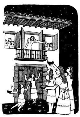 «Se parecerá el reino de los cielos a diez doncellas que tomaron sus lámparas y salieron a esperar al esposo. Cinco de ellas eran necias y cinco eran sensatas. Las necias, al tomar las lámparas, se dejaron el aceite; en cambio, las sensatas se llevaron alcuzas de aceite con las lámparas. El esposo tardaba, les entró sueño a todas y se durmieron. A medianoche se oyó una voz: “¡Que llega el esposo, salid a recibirlo!” Entonces se despertaron todas aquellas doncellas y se pusieron a preparar sus lámparas. Y las necias dijeron a las sensatas: “Dadnos un poco de vuestro aceite, Mientras iban a comprarlo, llegó el esposo, y las que estaban preparadas entraron con él al banquete de bodas, y se cerró la puerta. Más tarde llegaron también las otras doncellas, diciendo: “Señor, señor, ábrenos.” Pero él respondió: “Os lo aseguro: no os conozco.” Por tanto, velad, porque no sabéis el día ni la hora.»