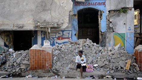 Una mujer mendiga en una calle del centro de Puerto Príncipe cuatro días antes del primer aniversario del terremoto de Haití