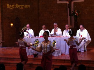 Sí. Yo creo más en los signos que en los discursos. Nuestra tradición católica está llena de simbología y nosotros intentamos recrear también la cultura camboyana, que es riquísima. Su música, su poesías, sus bailes, sus ropas, nos ayudan a hacer una liturgia más camboyana.