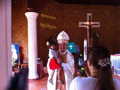 Yo llegué aquí después de su asesinato. Él era camboyano y lo mataron en la revolución de Pol Pot. Después de eso, la sede quedó vacante durante mucho tiempo. En el año 91, pudo volver a Camboya el administrador de Battambang, y en el año 2000 me nombraron a mí prefecto apostólico y él pudo descansar de Battambang hasta que se jubiló.