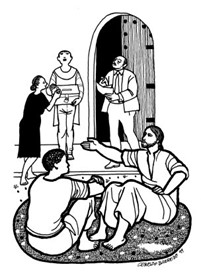 Estando Jesús sentado enfrente del arca de las ofrendas, observaba a la gente que iba echando dinero: muchos ricos echaban en cantidad; se acercó una viuda pobre y echó dos reales.