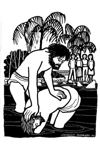 «Yo os bautizo con agua; pero viene el que puede más que yo, y no merezco desatar la correa de sus sandalias. Él os bautizará con Espíritu Santo y fuego.»