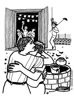 “Mira: en tantos años como te sirvo, sin desobedecer nunca una orden tuya, a mi nunca me has dado un cabrito para tener un banquete con mis amigos; y cuando ha venido ese hijo tuyo que se ha comido tus bienes con malas mujeres, le matas el ternero cebado.”