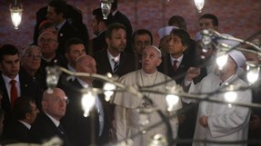 Francisco, durante su visita a la Mezquita Azul