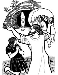 En aquel tiempo, las hermanas de Lázaro mandaron recado a Jesús, diciendo: «Señor, tu amigo está enfermo.» Jesús, al oírlo, dijo: «Esta enfermedad no acabará en la muerte, sino que servirá para la gloria de Dios, para que el Hijo de Dios sea glorificado por ella.» Jesús amaba a Marta, a su hermana y a Lázaro. Cuando se enteró de que estaba enfermo, se quedó todavía dos días en donde estaba. Sólo entonces dice a sus discípulos: «Vamos otra vez a Judea.» Cuando Jesús llegó, Lázaro llevaba ya cuatro días enterrado. Cuando Marta se enteró de que llegaba Jesús, salió a su encuentro, mientras María se quedaba en casa. Y dijo Marta a Jesús: «Señor, si hubieras estado aquí no habría muerto mi hermano. Pero aún ahora sé que todo lo que pidas a Dios, Dios te lo concederá.» Jesús le dijo: «Tu hermano resucitará.» Marta respondió: «Sé que resucitará en la resurrección del último día.» Jesús le dice: «Yo soy la resurrección y la vida: el que cree en mí, aunque haya muerto, vivirá; y el que está vivo y cree en mí, no morirá para siempre. ¿Crees esto?» Ella le contestó: «Sí, Señor: yo creo que tú eres el Mesías, el Hijo de Dios, el que tenía que venir al mundo.» Jesús sollozó y, muy conmovido, preguntó: «¿Dónde lo habéis enterrado?» Le contestaron: «Señor, ven a verlo.» Jesús se echó a llorar. Los judíos comentaban: «¡Cómo lo quería!» Pero algunos dijeron: «Y uno que le ha abierto los ojos a un ciego, ¿no podía haber impedido que muriera éste?» Jesús, sollozando de nuevo, llega al sepulcro. Era una cavidad cubierta con una losa. Dice Jesús: «Quitad la losa.» Marta, la hermana del muerto, le dice: «Señor, ya huele mal, porque lleva cuatro días.» Jesús le dice: «¿No te he dicho que si crees verás la gloria de Dios?» Entonces quitaron la losa. Jesús, levantando los ojos a lo alto, dijo: «Padre, te doy gracias porque me has escuchado; yo sé que tú me escuchas siempre; pero lo digo por la gente que me rodea, para que crean que tú me has enviado.» Y dicho esto, gritó con voz potente: «Lázaro, ven afuera.» El muerto salió, los pies y las manos atadas con vendas, y la cara envuelta en un sudario. Jesús les dijo: «Desatadlo y dejadlo andar.» Y muchos judíos que habían venido a casa de María, al ver lo que había hecho Jesús, creyeron en él