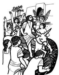 Fueron los discípulos e hicieron lo que les había mandado Jesús: trajeron la borrica y el pollino, echaron encima sus mantos, y Jesús se montó. La multitud extendió sus mantos por el camino; algunos cortaban ramas de árboles y alfombraban la calzada. Y la gente que iba delante y detrás gritaba: