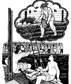 Aquel día, salió Jesús de casa y se sentó junto al lago. Y acudió a él tanta gente que tuvo que subirse a una barca; se sentó, y la gente se quedó de pie en la orilla.