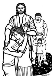 Le acercaban niños para que los tocara, pero los discípulos les regañaban. Al verlo, Jesús se enfadó y les dijo: «Dejad que los niños se acerquen a mí: no se lo impidáis; de los que son como ellos es el reino de Dios. Os aseguro que el que no acepte el reino de Dios como un niño, no entrará en él.» Y los abrazaba y los bendecía imponiéndoles las manos.