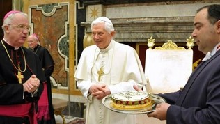 Michael J. Bransfield (i) presenta una tarta de cumpleaños Cardenal Ernest Simoni, 28 años preso del