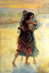 No es el hijo que busca al Padre. Es el Padre que nunca deja la colina, soñando con la silueta lejana del hijo. Esperando que, por fin, se harte de bellotas y venga a la mesa del Pan y el Vino y los hermanos. No es el Padre quien tarda. Él es la terquedad y la espera. Es el hijo que se entretiene. Se tambalea, de mesón en mesón, quemando una fortuna.