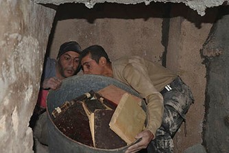 Biblias emparedadas que se salvaron del Estado Islámico en el monasterio cristiano de San Behnam, Irak.