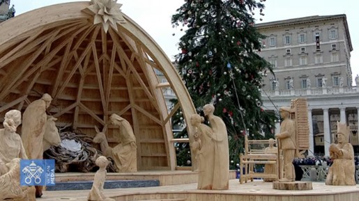 Ambos símbolos muestran “dos actitudes humanas y cristianas”: “el árbol nos enseña las raíces y el belén nos invita a la contemplación”, porque es “bueno apreciar los momentos de silencio y oración en nuestros días, a menudo abrumados por el frenesí”, añadió.